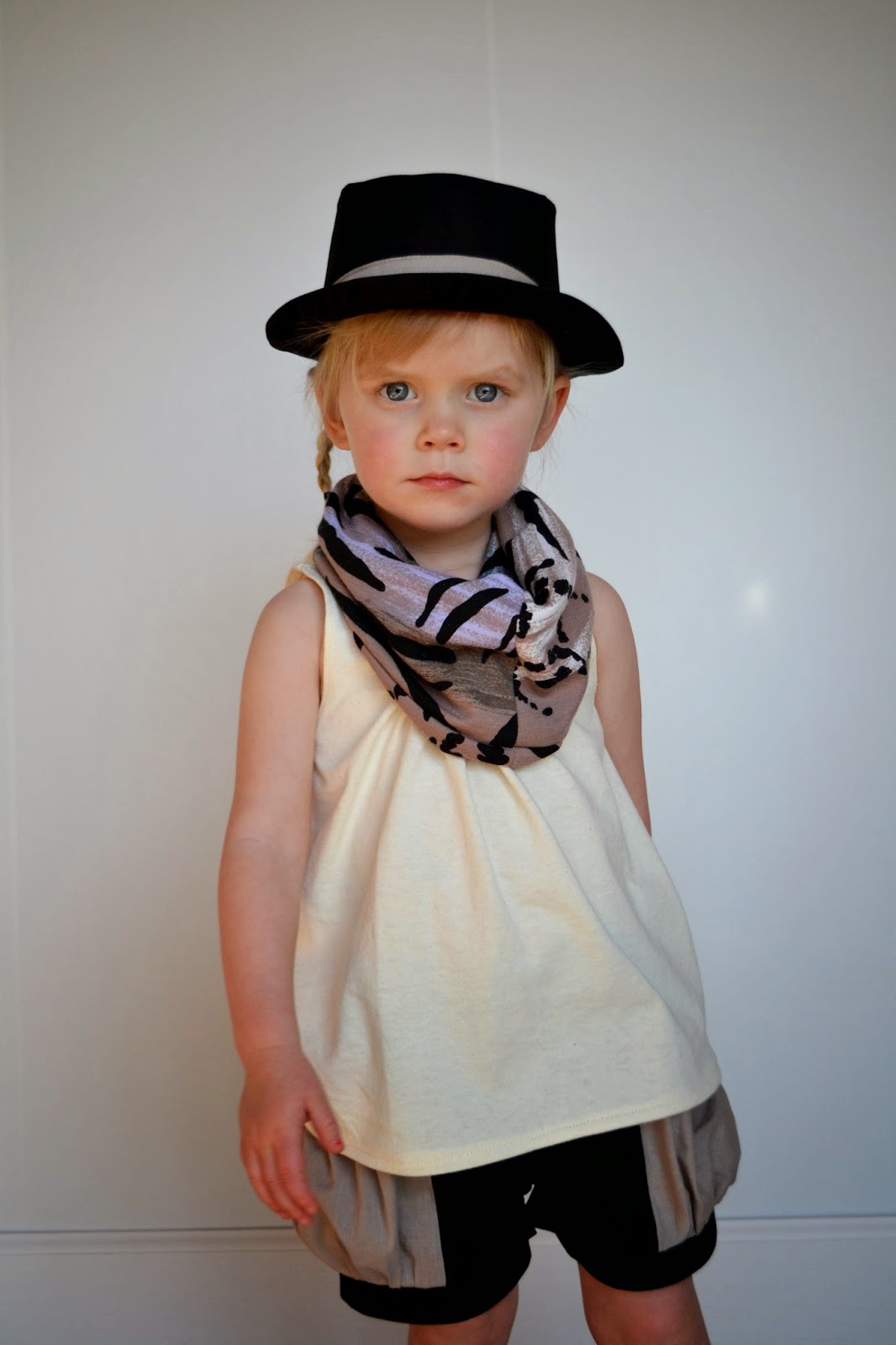 The hat is the Fedora Hat from Elegance and Elephants. The shorts are the Bubble Pocket Shorts - also E&E. The fedora band and the khaki bubble pockets are from an upcycled H&M dress donated by my lovely sister. The black fabric for the shorts and fedora is plain old black cotton from my stash.